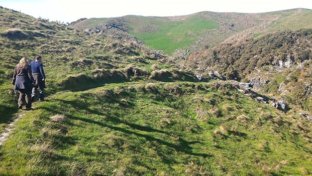 このツアーでは、ニュージーランドらしい牧草地の景色のなかを徒歩で歩きながら二つの洞窟を探検します。