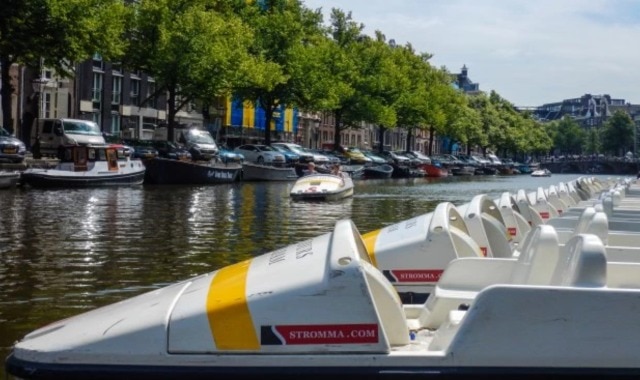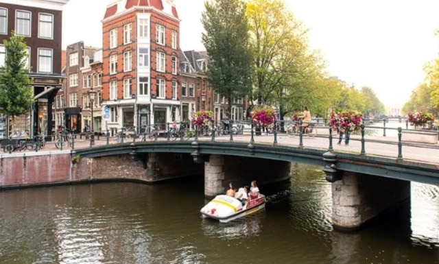 オランダといえばアムステルダム、アムステルダムといえばの運河にて、カナルバイクのレンタルはいかがですか?