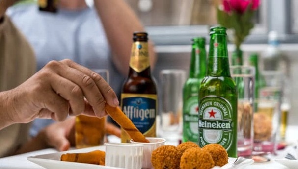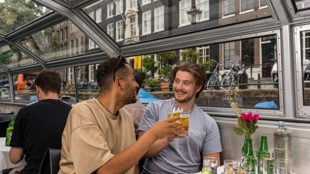 オランダ人が大好きなビールとビタボーレン(一口サイズのコロッケ、牛肉入り)&チーズスナックをつまみながら、アムステルダムの運河を巡る約75分のほろ酔いクルーズ!