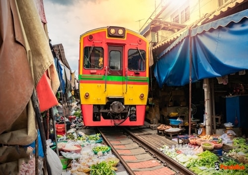 メディアにも度々取り上げられる大人気観光スポット、「メークローン線路市場」へご案内いたします。