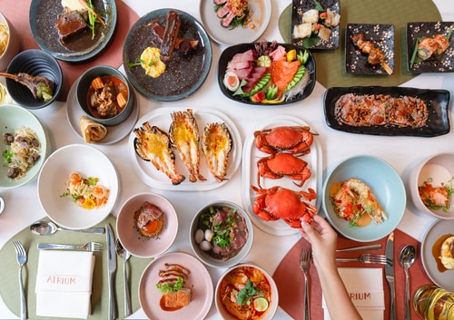 バンコクの活気あふれるスクンビットエリアに位置する「Atrium Restaurant」は、BTSナナ駅から抜群のアクセスを誇る、ランドマーク・ホテル内の人気ビュッフェレストランです。