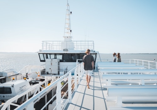 ラグジュアリーフェリーでモートン湾をクルーズしながら島へ移動 |