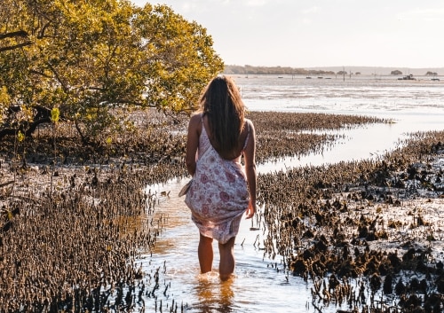 モートン湾をフェリーで渡り、専門ガイドとともに、美しいビーチや自然の名所、先住民の文化に触れるスポットを巡ります。