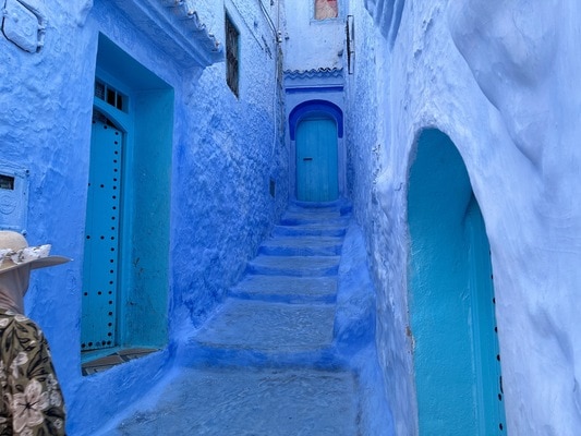 シャウエンの旧市街は、家の壁も道の階段も、様々な青色で染められています。