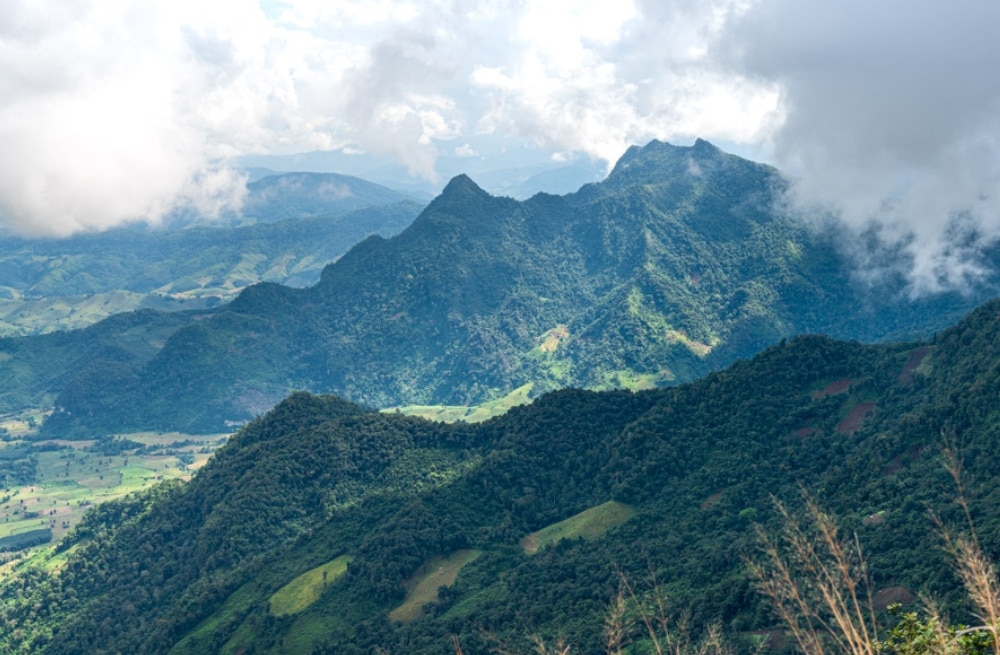 プーチーファー(Phu Chi Fa)山頂からは隣国ラオスの山々や国境を流れるメコン川のパノラマビューを楽しめます。 |