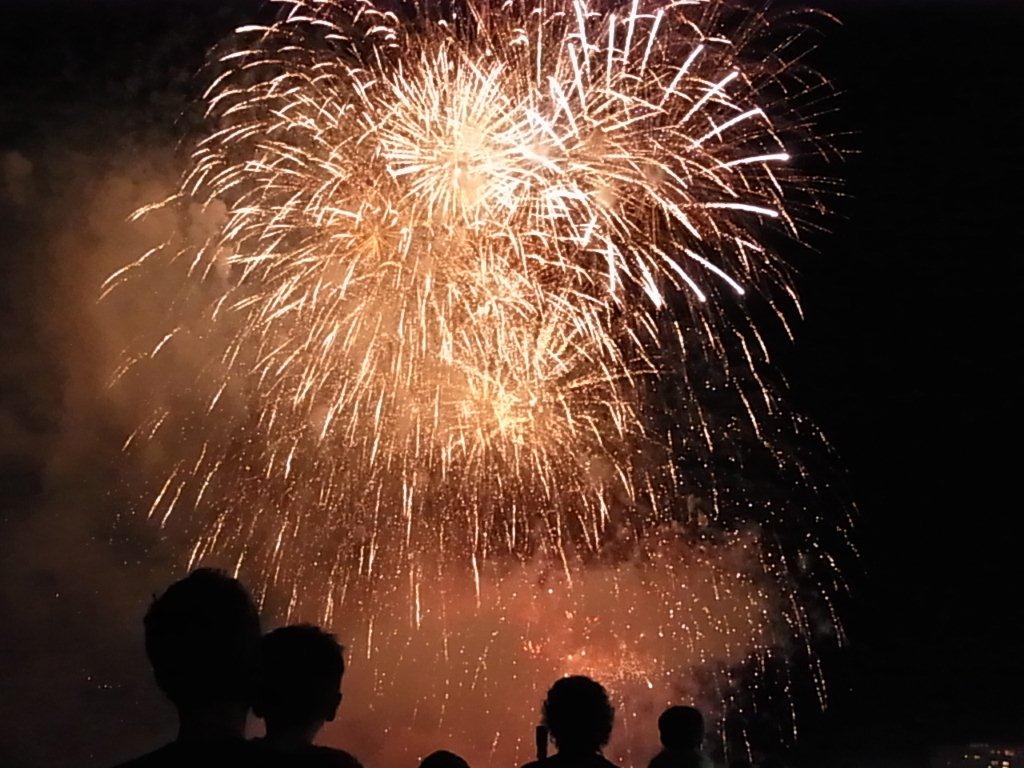 ビュッフェディナー、ウェルカムドリンク、デッキにて花火鑑賞