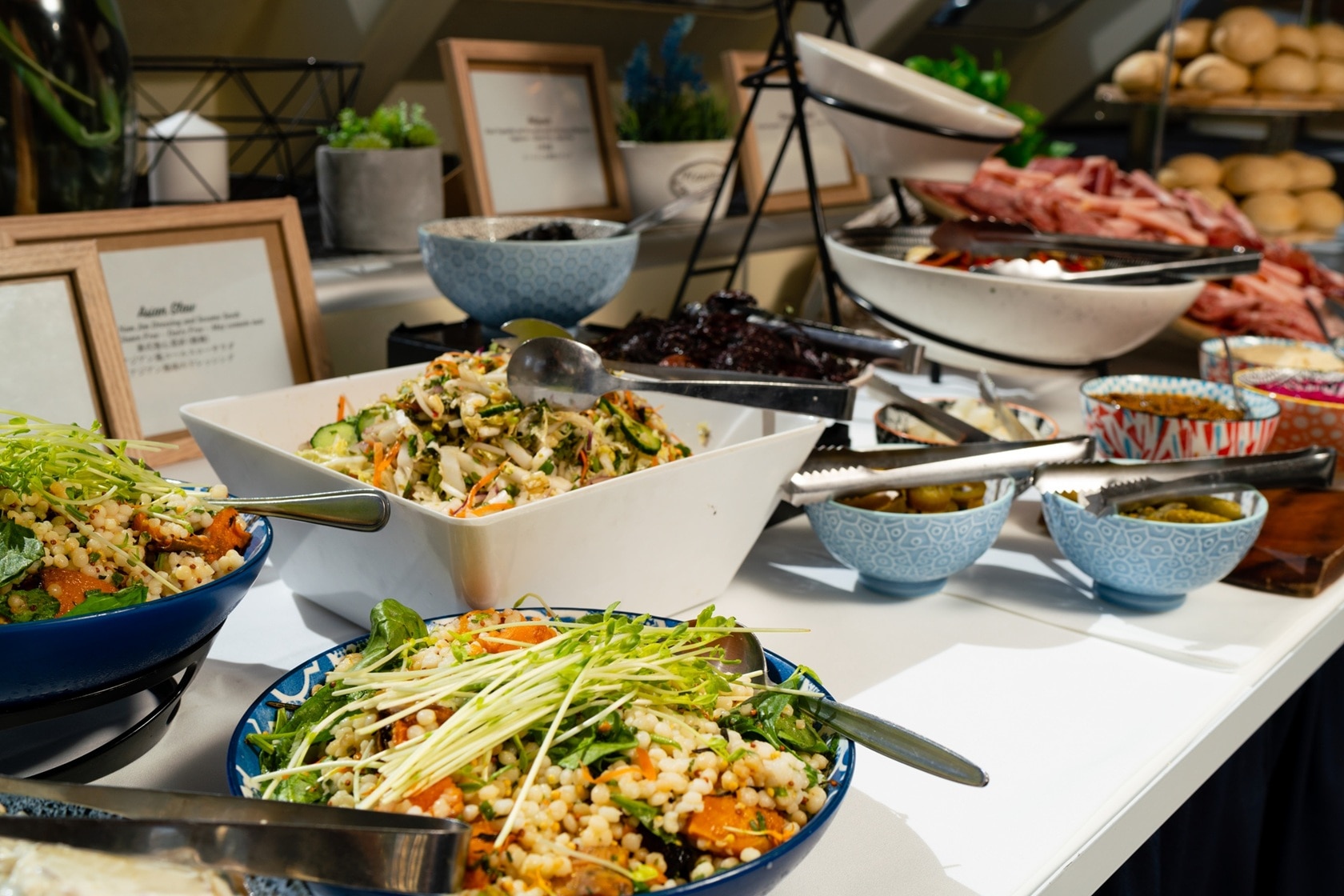 地元の新鮮な野菜やチーズ、フルーツ、ハムやサラミ等の前菜から肉・魚・エビなどのメイン、オーストラリアならではのデザートまで幅広いメニューが並びます。