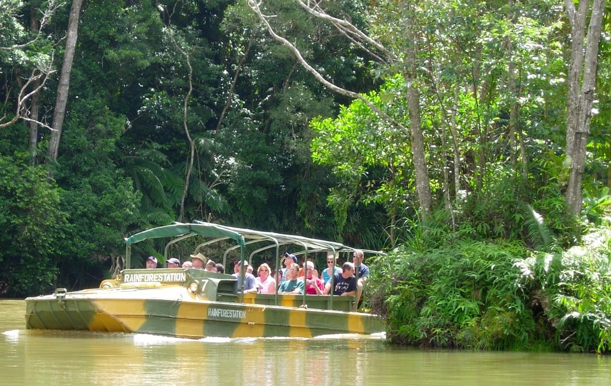 ホテルもしくは最寄りの集合場所からの往復送迎、行き:片道キュランダ列車、帰り:片道スカイレール、キュランダ村からレインフォレステーションまでの往復シャトルバス、アーミーダック乗車、アボリジニ文化体験、ワイルドライフパーク(ミニ動物園)入園、オーストラリア風BBQランチ