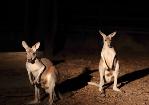 ライトアップされた園内を走るトラムからは、暗闇の中で活動を始める動物たちの姿を観察でき、