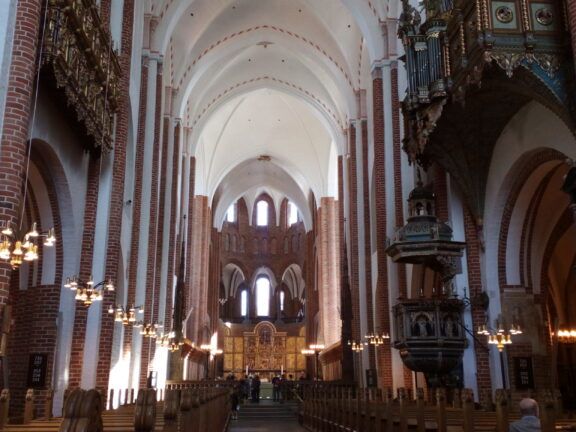 日本語ガイドとデンマーク最初の首都として栄えた古都ロスキレへ。歴代のデンマーク国王が眠り、世界遺産にも登録されている12世紀建造のロスキレ大聖堂へ入場し、歴代国王の棺や祭壇を見学します。デンマークを深く知りたい方にお勧め!