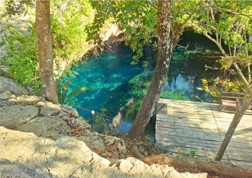 朝一番での到着、澄み切ったセノーテをお楽しみください(滞在時間約1時間/遊泳時間約25分) |