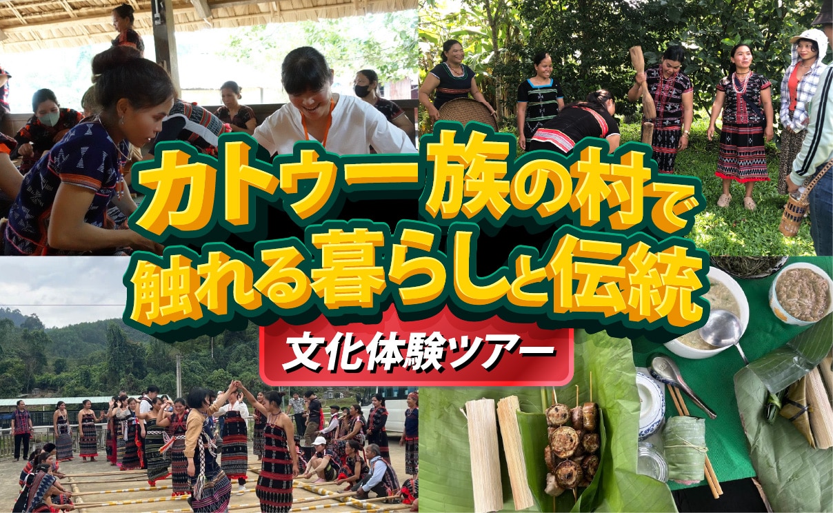 本ツアーでは、カトゥー族の村を訪れ、カトゥー族との交流、伝統料理の昼食、生活体験、そして織り物体験を通して、受け継がれる文化に触れる特別な時間をお楽しみいただけます。