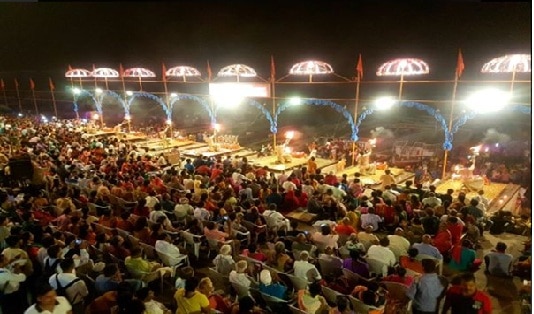 夜のガンジス河で行われるヒンズー教の祈りの儀式「アルティプージャ」見学 |