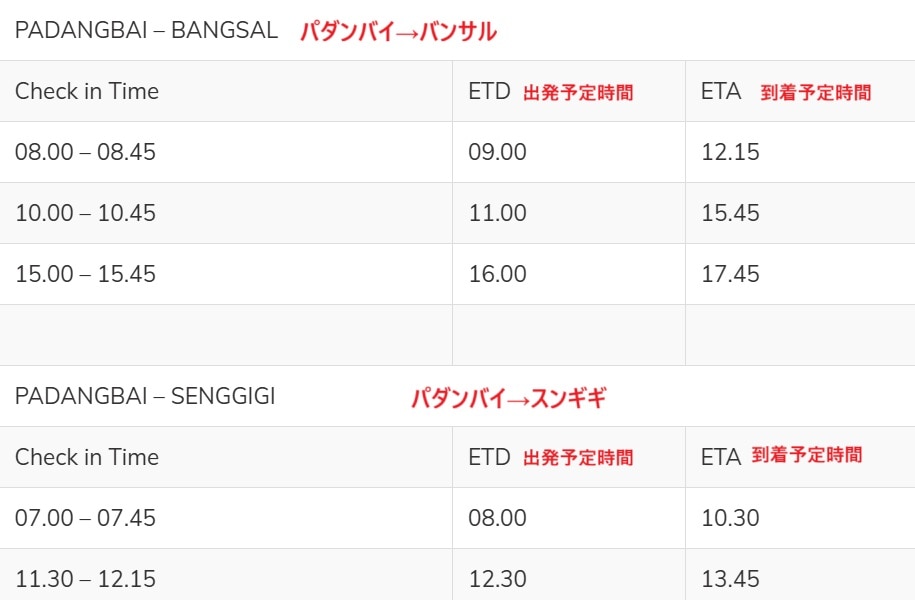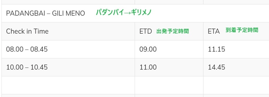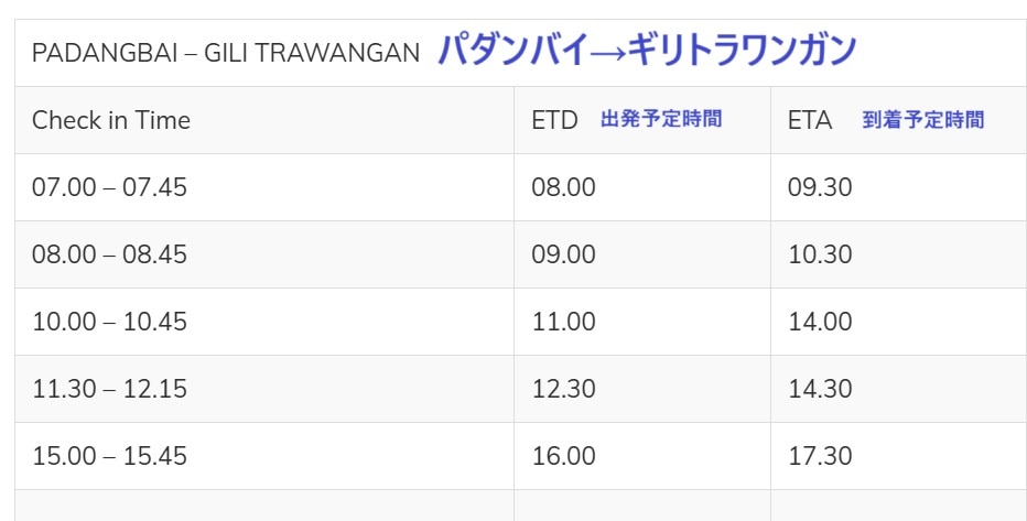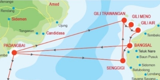 ギリ・アイル島、ギリ・メノ島、ロンボク島(バンサル/スンギギ)を結ぶスピードボートです。