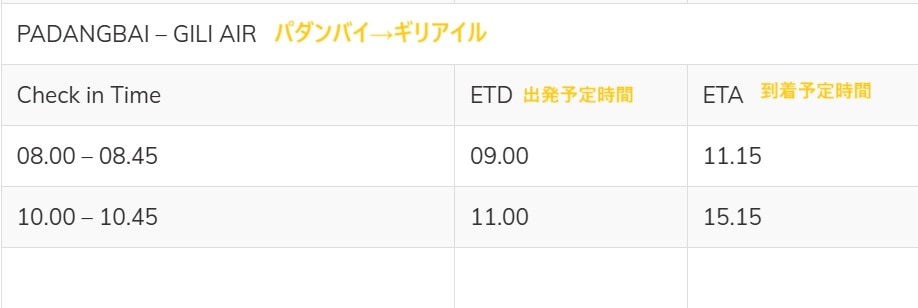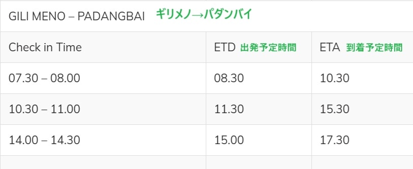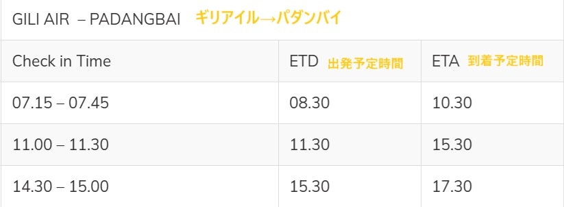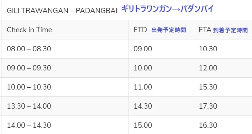 ギリ3島/ロンボク島 ⇒ パダンバイ(バリ島)港 片道スピードボートをお申込みの場合も