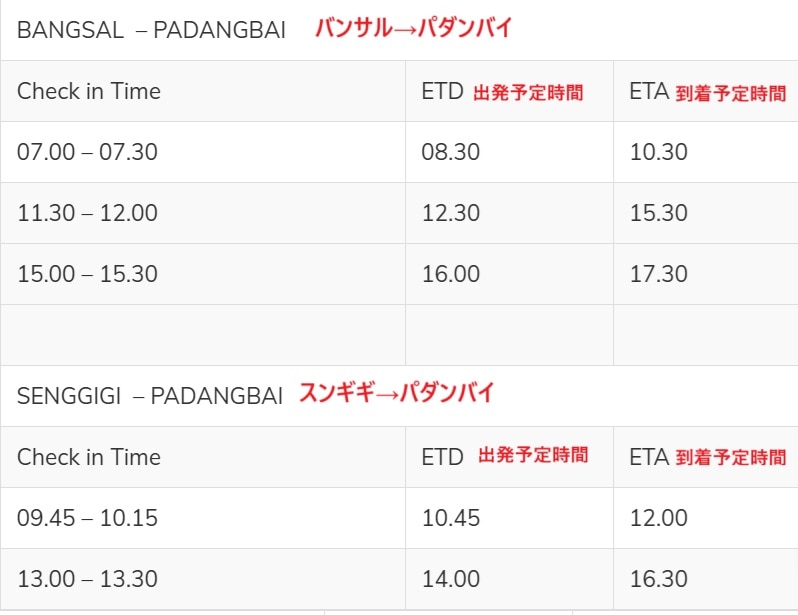 パダンバイ港ご利用【2025/9/1~2026/3/31までの料金】