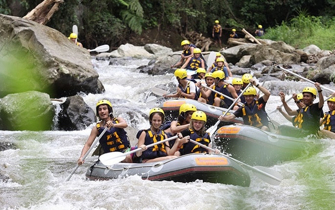 象と触れ合った後はラフティングへ!自然の中をボートに乗って冒険!!