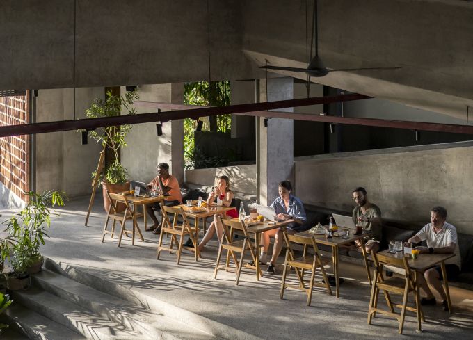 チャングーのバトゥボロンビーチ近くの観光にも便利な場所にある開放的なカフェ