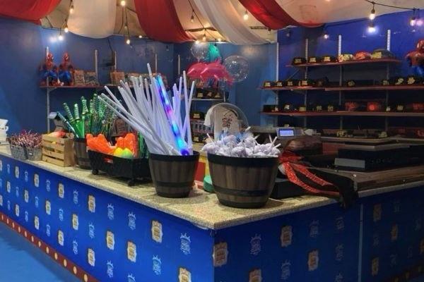 会場内に売店があり、ポップコーン、ホットドッグ、スノーコーン、ナチョス、コットンキャンディー、ソーダ、ノベルティグッズなどの販売がございます。