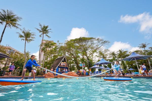 スリル満点のウォータースライダー、カヤックに乗ってジャングルをクルーズ気分が楽しめるラグーンカヤック。プール内にお魚のいる世界でも珍しい泳げる水族館も! ビーチでは、ビーチカヤックや人気のスタンドアップパドルボートも体験できます。ウインドサーフィンは、初心者用から上級者用までお楽しみいただけるように各種セールをご用意!陸上で楽しめるアクティビティも多数。アーチェリーでは、小さなお子供様用のアーチェリーもご用意しております。プロテクターを用意しているので安心。南国庭園でのパターゴルフや、巨大トランポリンを体験してみませんか?ウォーターパークで遊んだ後はホテル内パシフィック・パビリオンでスーパーアメリカンサーカスを鑑賞!従来のサーカスらしい内容に現代的なテクノロジーのアレンジを加えた新しい演出でオープニングからフィナーレまで観客を魅了!その後スカイライトでディナー。またはホテル内PICアンフィシアターでディナー後、パイレーツ オブ ザ パシフィックショーを鑑賞!世界最高峰の才能が集結、興奮とアクションがノンストップ、笑いと感動が胸を熱くし、眠っていたあなたの冒険心を解き放つ、家族皆で楽しめる冒険が待っている!