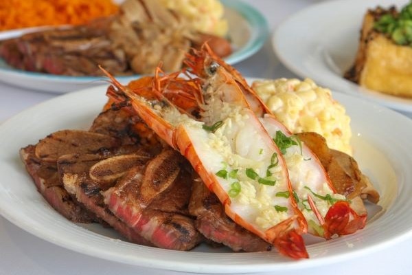 ※3 ブッフェスタイル:前菜、サラダ、デザート、メイン料理:プレート式(ショートリブ、照焼チキン、海老、パスタサラダ、レッドライス、お子様は海老の代わりにソーセージ)アイスティーまたはソーダ1杯、お水 |