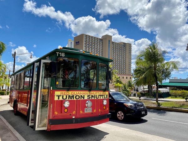 - グアム国際空港⇒ホテル 片道送迎(混乗車)+赤いシャトルバス 3日券