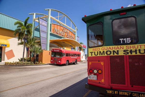- グアム国際空港⇒ホテル 片道送迎(混乗車)+赤いシャトルバス 5日券