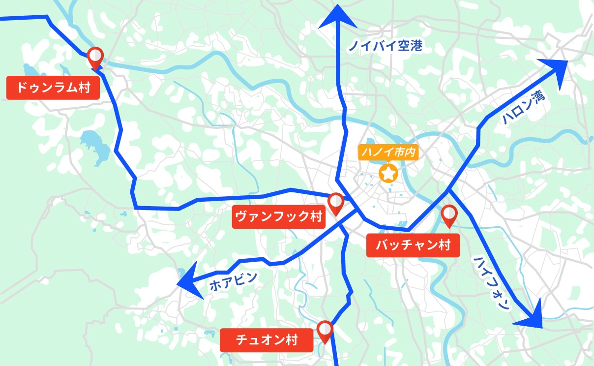焼き物のバッチャン村、シルクのヴァンフック村、ノン傘のチュオン村などはいかがですか?