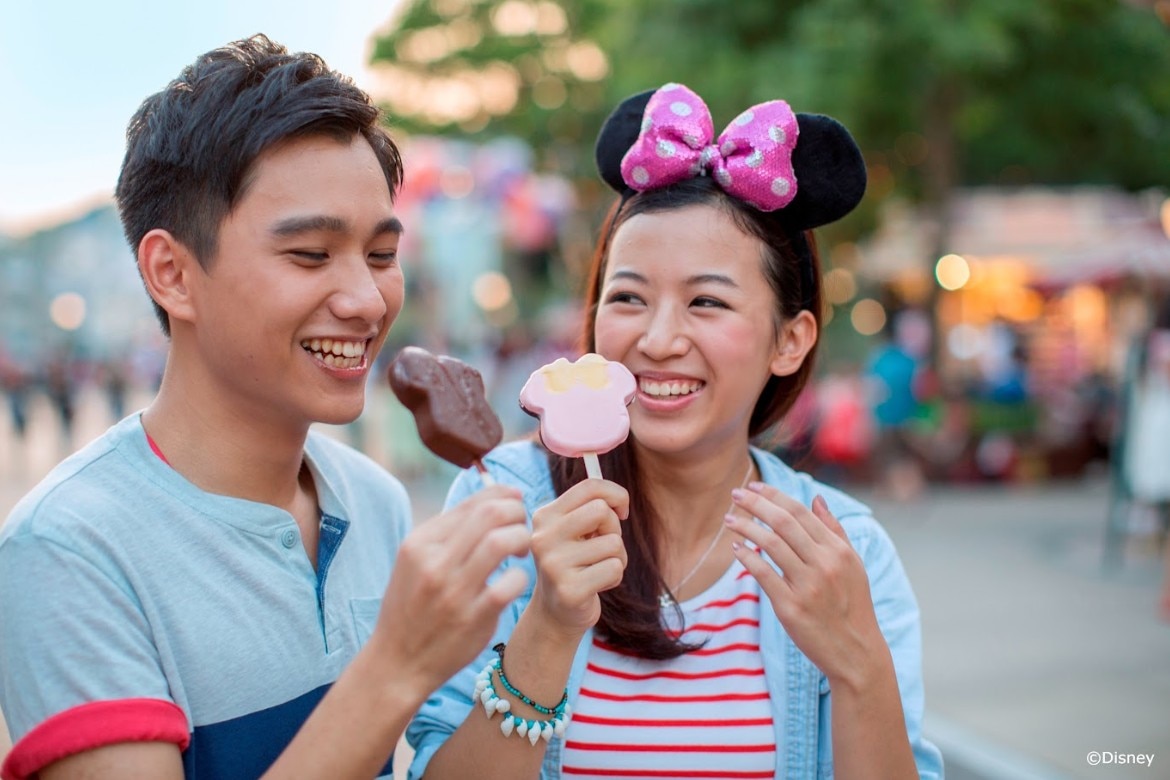 ③パーク内のアウトドア・ベンディング・カートで、指定のフローズンロリポップまたはポップコーン(HK$45相当)からお好きなものを1つお選びいただけます。