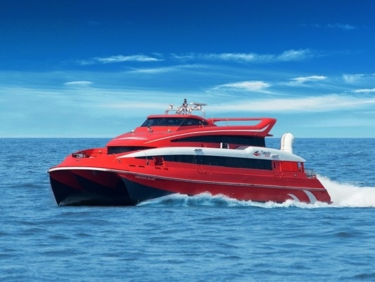 香港島中心部から約60分でマカオの歴史市街地へ。船内は無料Wi-Fi完備で移動中も快適です。