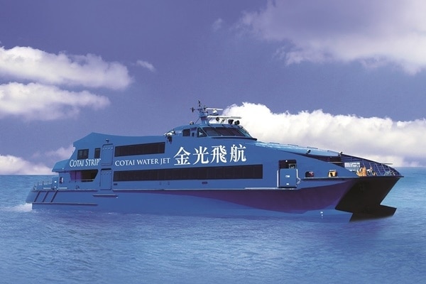 香港島の上環とマカオのタイパフェリーターミナルを約60分で結ぶ、コタイウォータージェット(金光飛航)の片道搭乗チケット事前予約です。