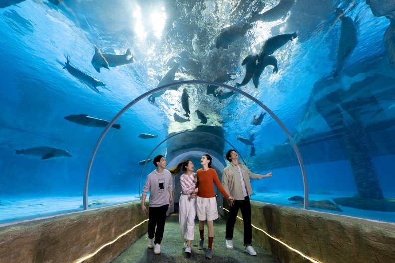 園内は山と海の2エリアに分かれており、移動は空中ケーブルカーや急勾配を走る登山列車「オーシャン・エクスプレス」など、移動手段もアトラクションの一つ。大人も子どもも一日中満喫できる観光スポットです。