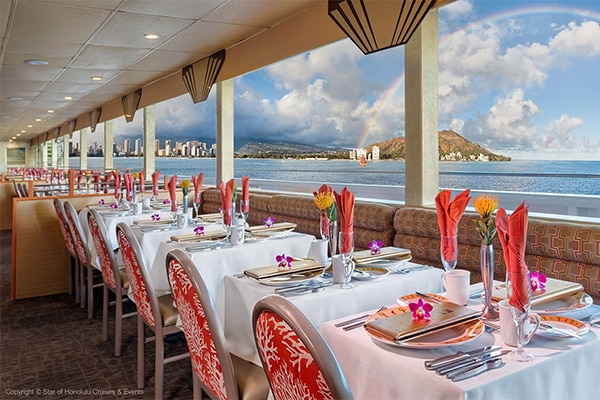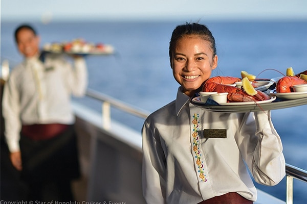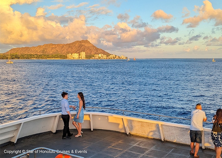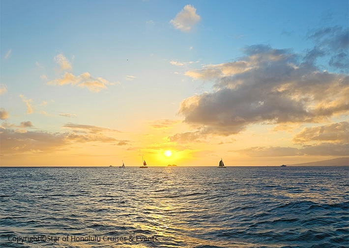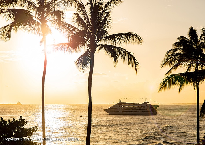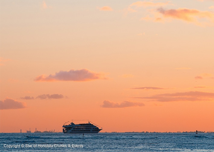 ・毎週金曜は、ワイキキ沖に上がるヒルトンの花火を船上からご覧いただけますよう、帰着時間が通常より約1時間遅くなります。