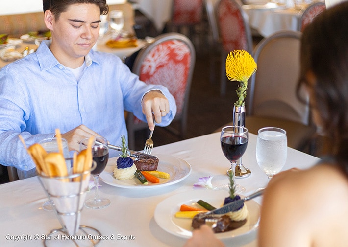 ・料金に含まれるもの:送迎、夕食、ドリンクチケット2枚(3杯目からは別料金)、ハワイ州税、サービス料(チップ)
