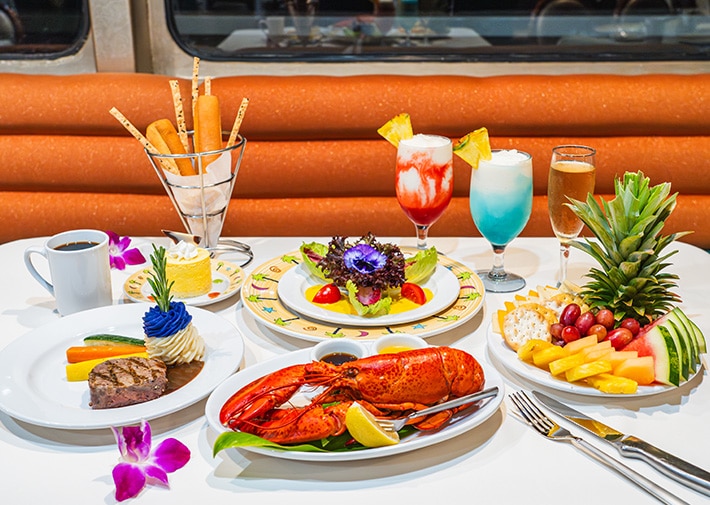 ※メインディッシュの変更をご希望のお客様は、予約情報入力画面に進んだ際に、ご希望の組み合わせ(ステーキ、ロブスター、鶏、魚から2つ、またはビーガン(菜食))を入力ください。アレルギーをお持ちのお客様は、何に対するアレルギーかをお知らせ下さい。生憎、メインディッシュ以外の変更はお受けできませんので、商品ページ上部の食材リストをご確認ください。
