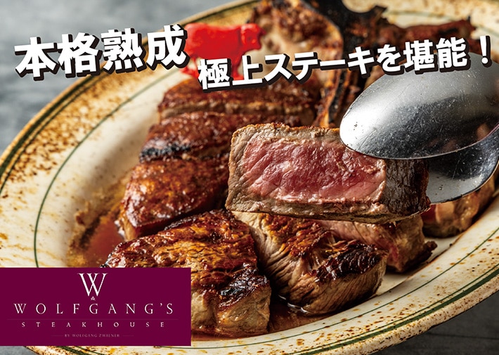 28日間じっくりと熟成させたドライエイジンドビーフを使用したウルフギャング・ステーキハウスの、牛肉本来の旨みが味わえる極上ステーキでお腹を満たしたあとは、タンタラスの夜景にうっとり。