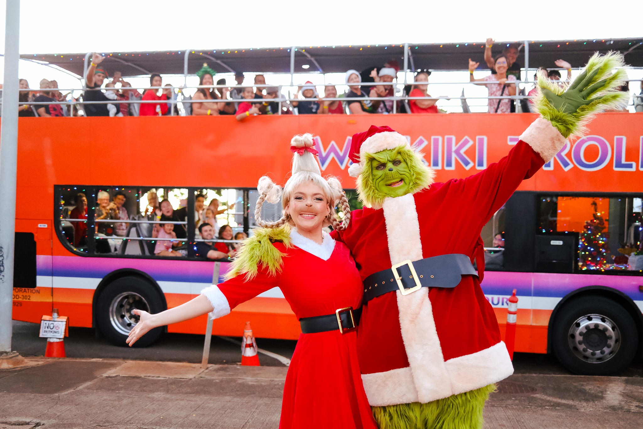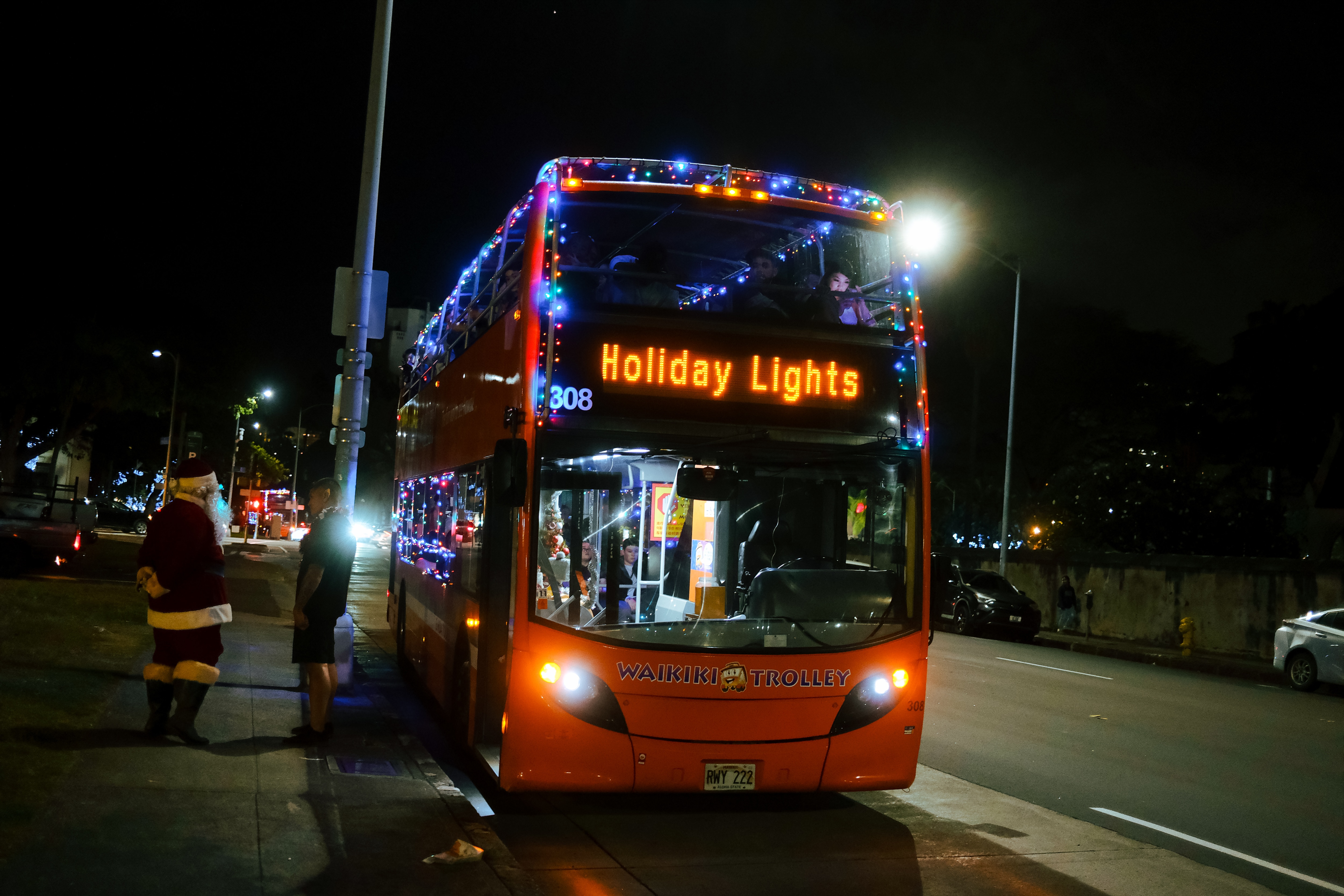 ダウンタウンのクリスマス・イルミネーション『ホノルル・シティ・ライツ』を見るトロリーが今年もダブルデッカー(2階建てバス)で登場!
