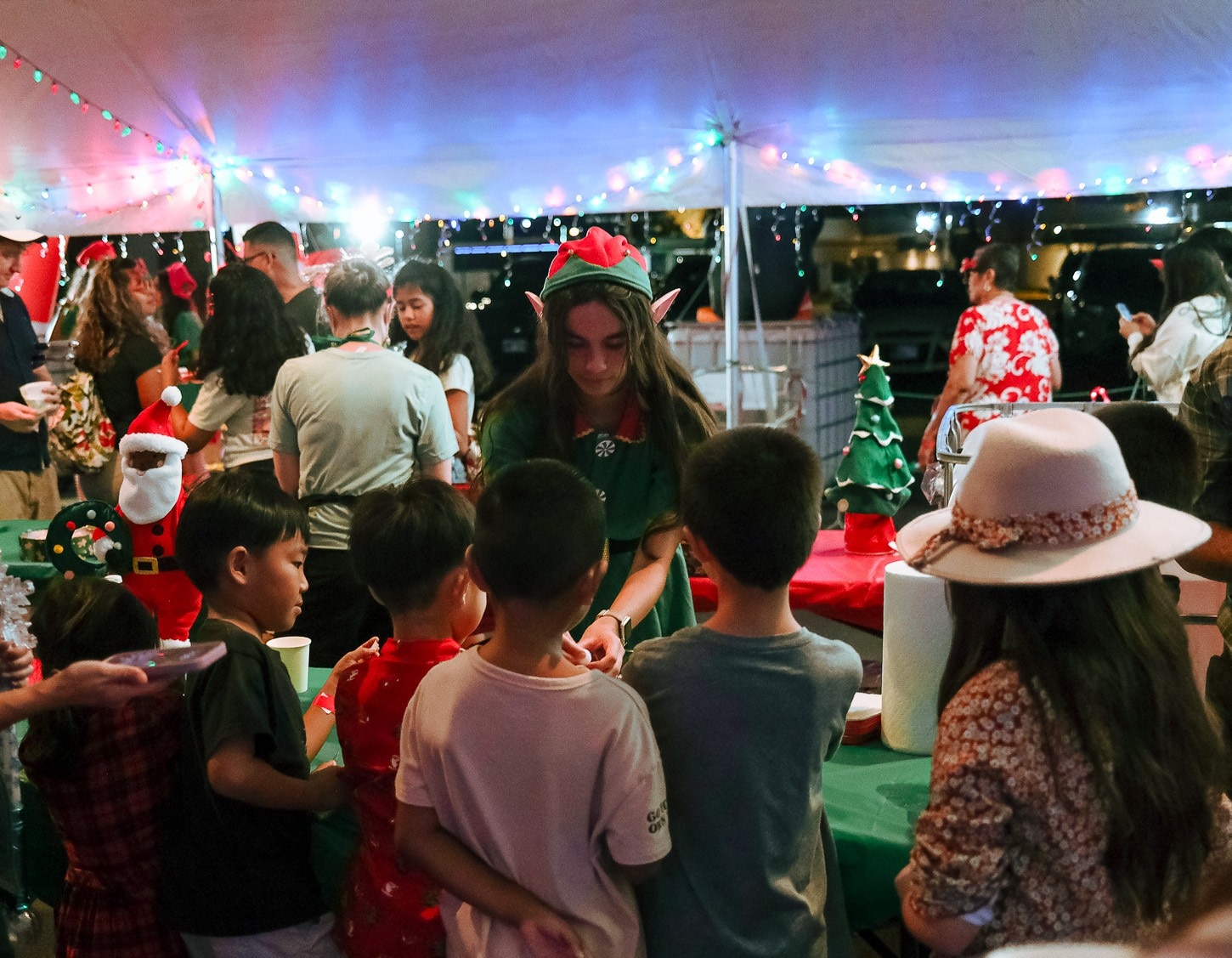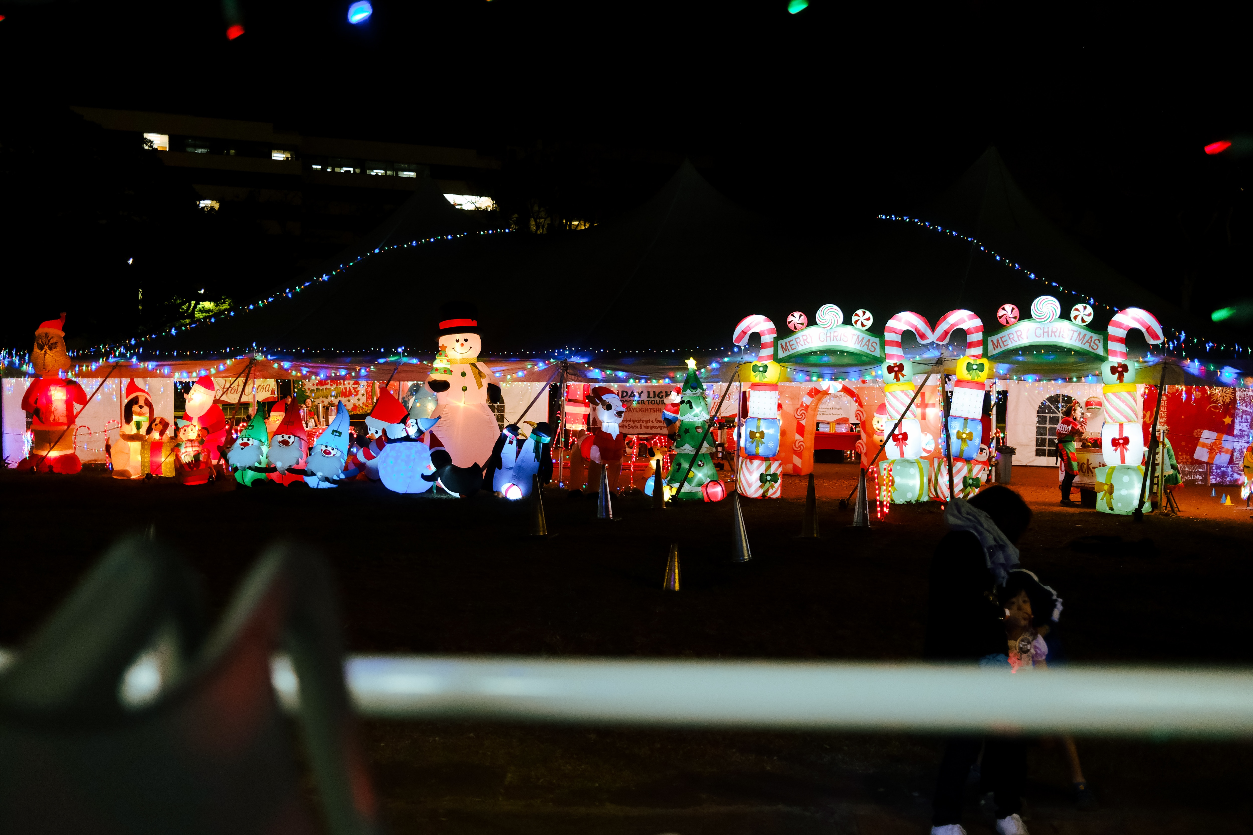 広場一帯が華やかなクリスマスライトと飾りつけで彩られる光景は、ハワイの冬の風物詩。