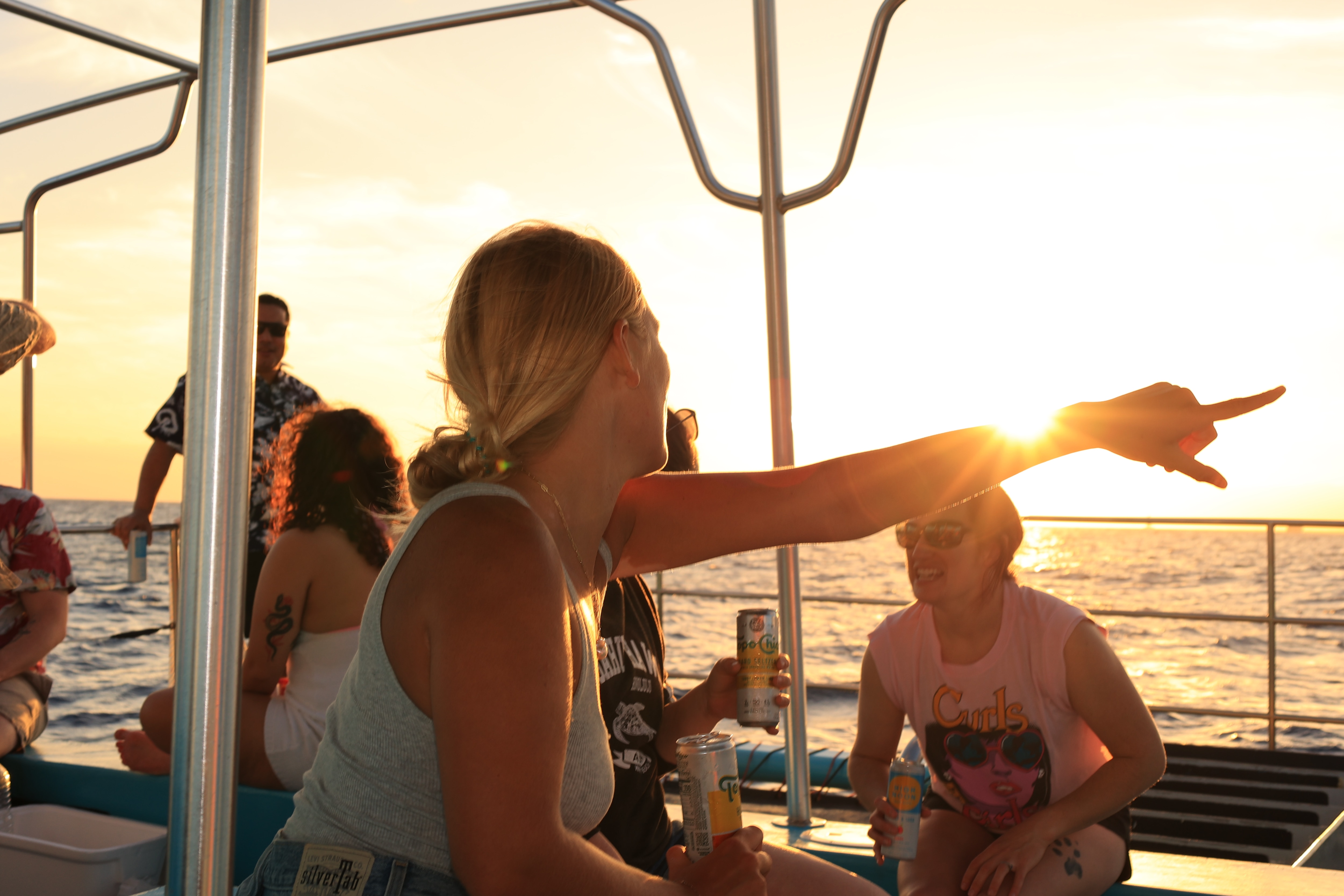 小さなお子様からご年配の方まで、ご家族みんなでご参加いただけるカジュアルなサンセットクルーズです。お食事やお飲み物をお持ち込み頂けます。