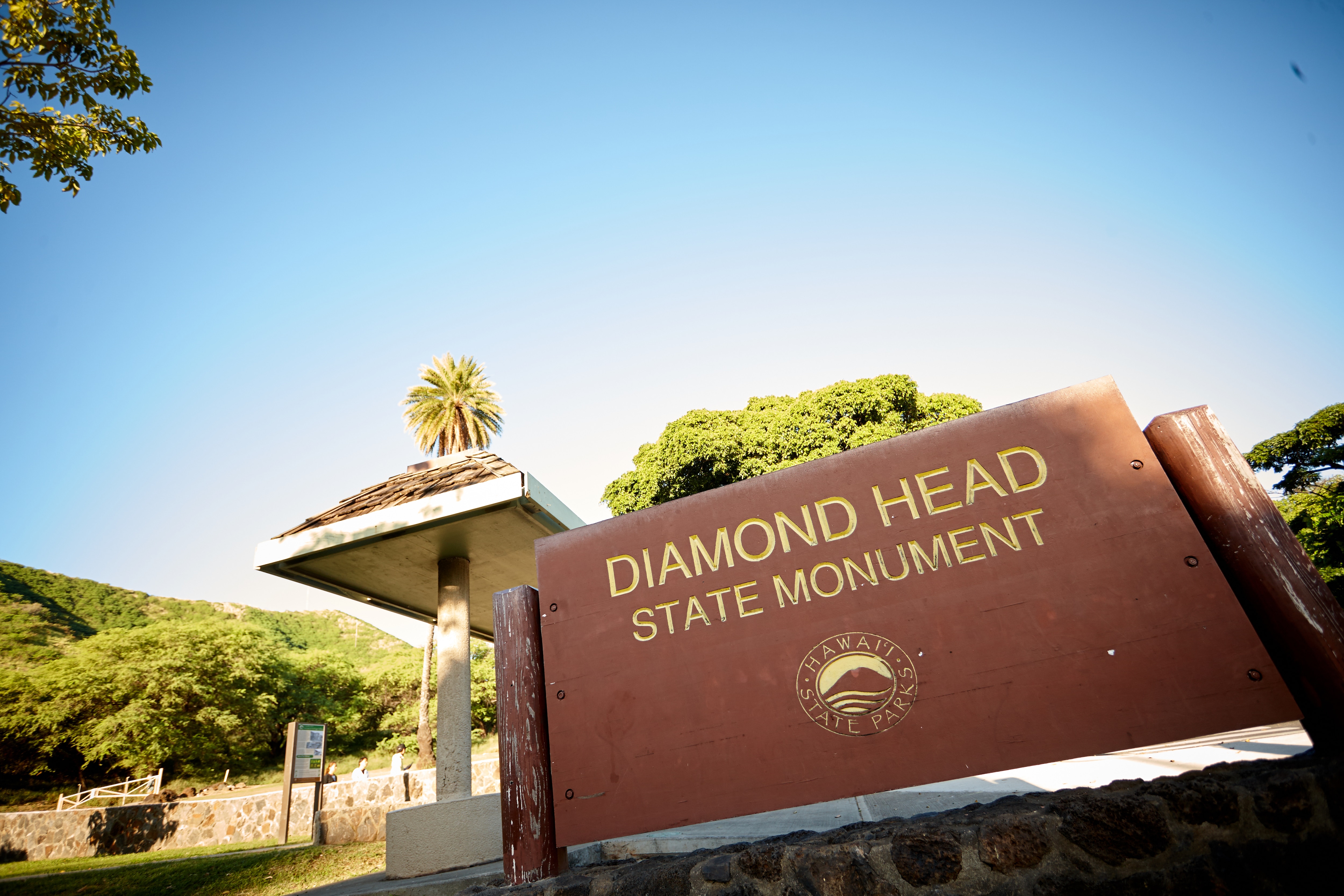 ダイヤモンドヘッドへ到着、ハイキング開始、下山後フルーツアサイボウルとマラサダをお渡します。 |