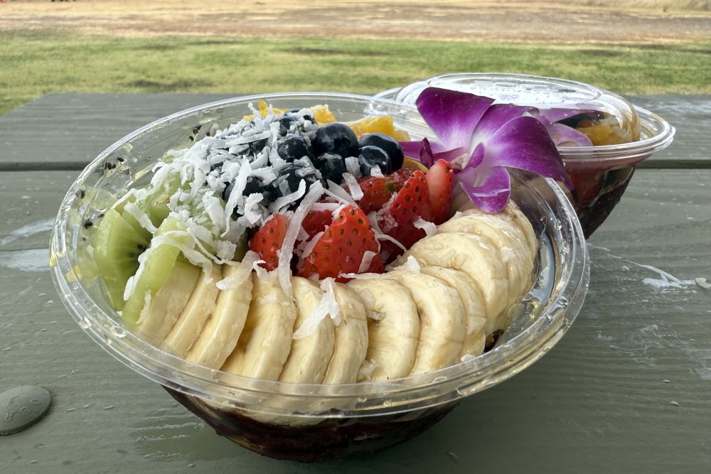 マラサダはダイヤモンドヘッド下山後の駐車場でお渡しいたします、フルーツアサイボウルは駐車場横のフードトラックのテーブルでご提供します。(車内での飲食はお控え下さい)