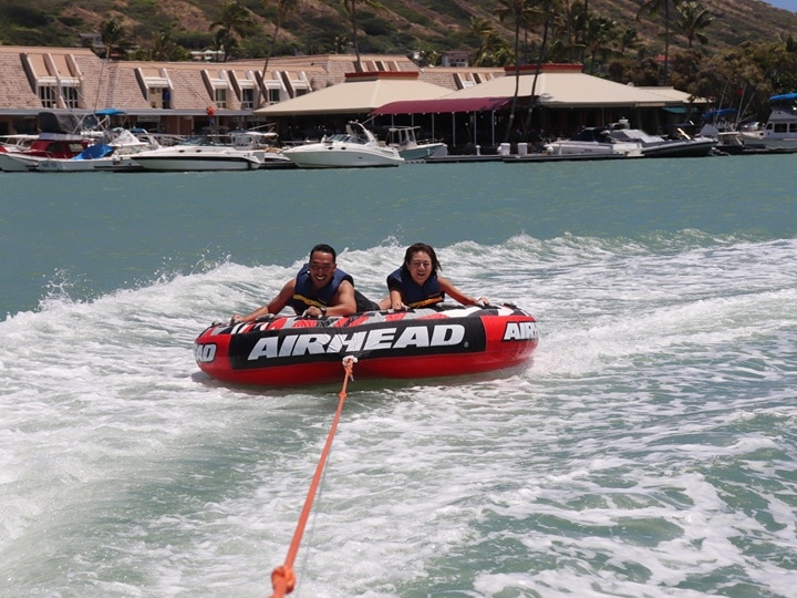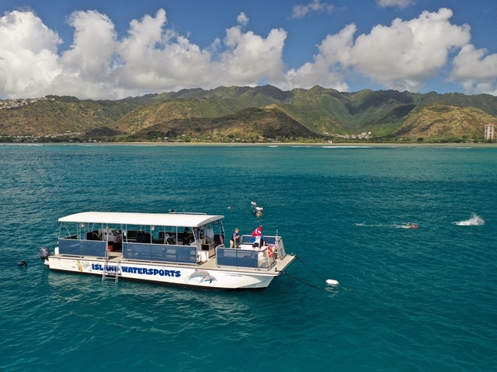 ハワイ・オアフ島の美しい東海岸「ハワイカイ」の海で、自分自身で操作するサブマリン・スクーターを体験しませんか?泳げない方や水が苦手な方でも、安心して海中をお散歩できます。視界いっぱいに広がるサンゴ礁、すぐそばに現れるウミガメやトロピカルフィッシュとの出会いは、まさに感動もの。さらに、午前中はバナナボートやバンパーチューブ、ウォータースキーまたはウェイクボードのレッスン付き!
