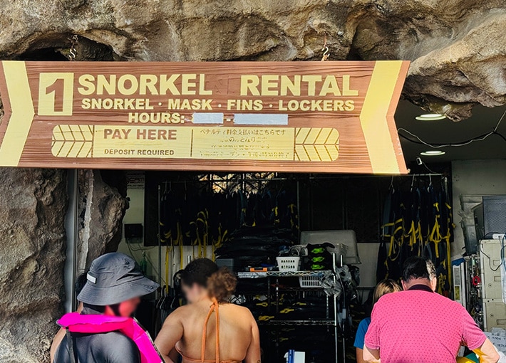 当日ハナウマ湾入園内のキオスクにてレンタル(有料)ください。お支払いはクレジットカードのみとなります。事前ご予約は受け付けておりません。※2025/10/28 情報