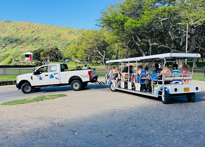 ・ハナウマ湾内入場の際に必要な注意事項を含めたビデオを行きの送迎車内にて視聴いただけますので、ハナウマ湾での時間を最大限に活用できます。
