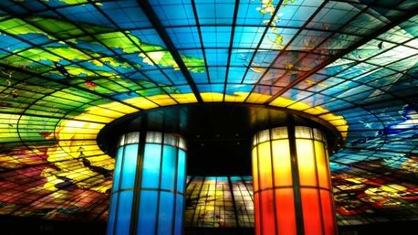 美麗島駅…ステンドグラスアート「光之穹頂(ドーム・オブ・ライト)」が描く色鮮やかな光の世界は、まるで幻想の中にいるよう。写真映え抜群のフォトスポットです。 |