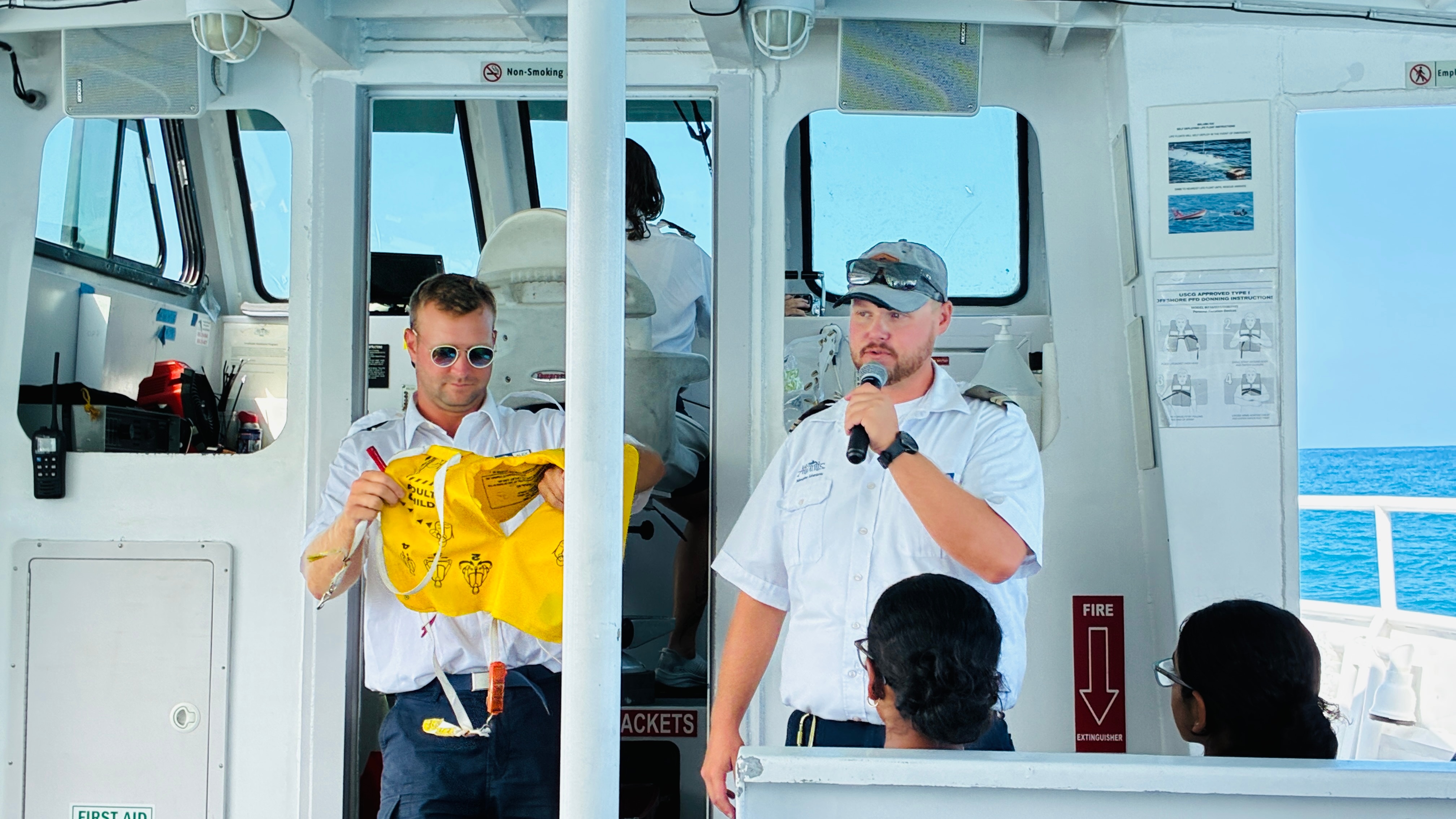 フレンドリーなスタッフがツアーチェックインやツアー中のご案内などを担当していますのでご安心ください。また、ツアーをより深く楽しみたい方はアトランティスアドベンチャーズ社のウェブサイトからご自身のスマートフォンに日本語案内をダウンロードしてご利用いただけますので、出港前までにご準備ください。