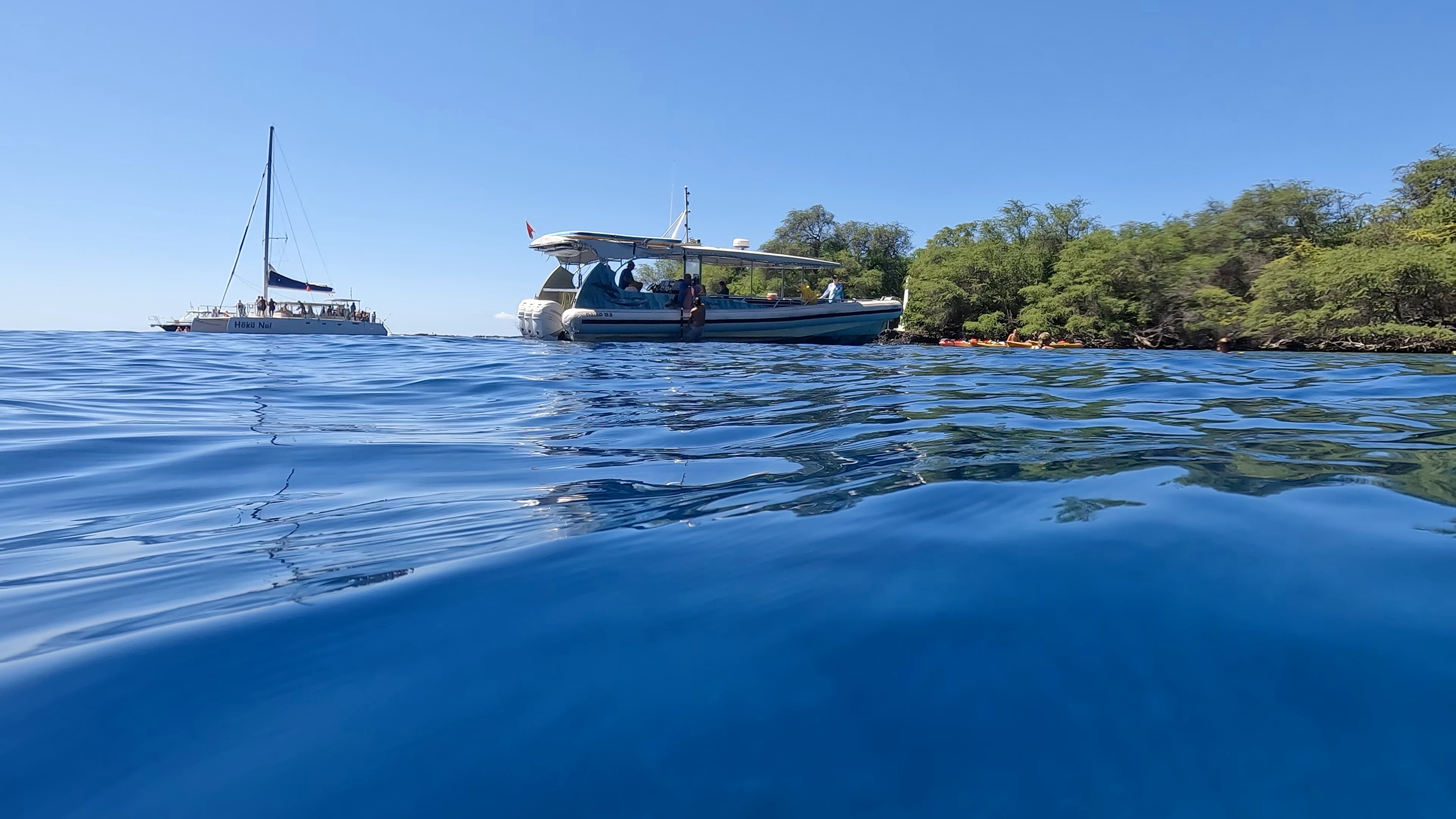 壮大な景色を背景に、年間を通して多くの海洋生物が観察されるコナコーストの海をクルーズし、ハシナガイルカやバンドウイルカなどを観察しながら、ハワイ語で「神の通り道」を意味するケアラケクア湾へ向かいます。ケアラケクア湾は、ハワイの歴史において非常に重要な場所であり、またハワイ島随一の透明度を誇る海洋保護区域にも指定されている特別な場所です。ここでは、シュノーケリングを楽しみながら、美しい海の世界を堪能できます。さらに、たくさん泳いだ後に嬉しい、グリル焼きのホットドックのランチ付きです。ハワイ島の海を半日で満喫していただける充実プランです。