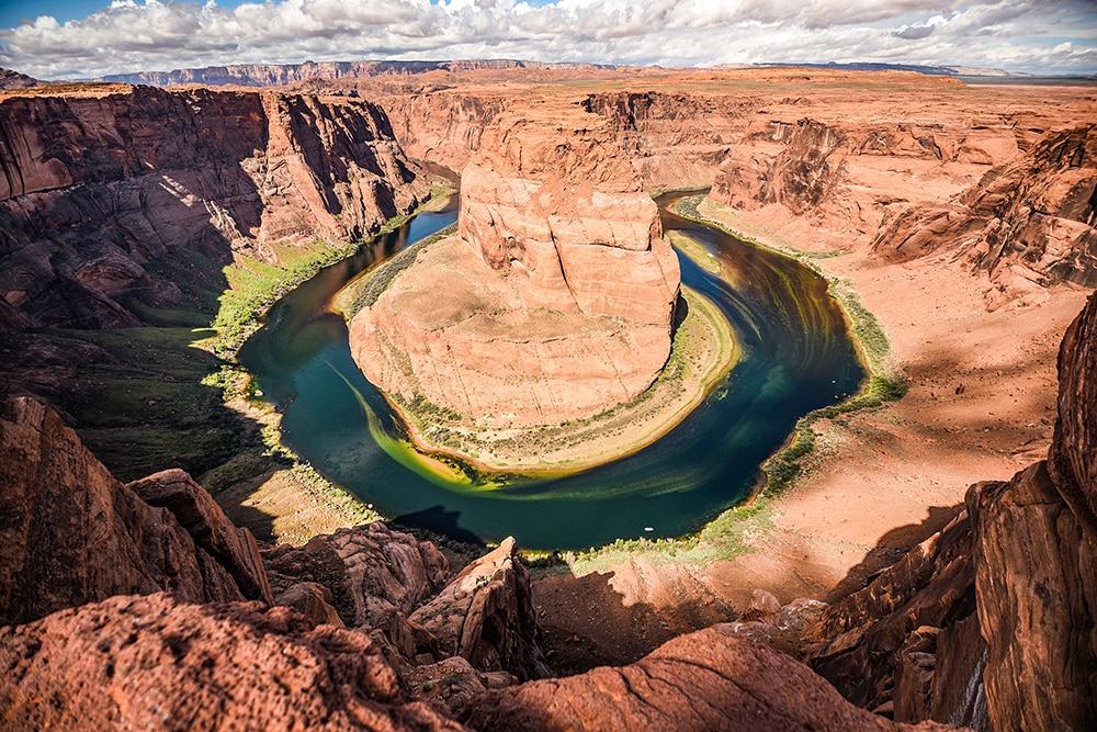 コロラド川が創り出した馬蹄形の断崖絶壁。吸い込まれそうな絶景を、30分ほどの自由時間でじっくりと堪能