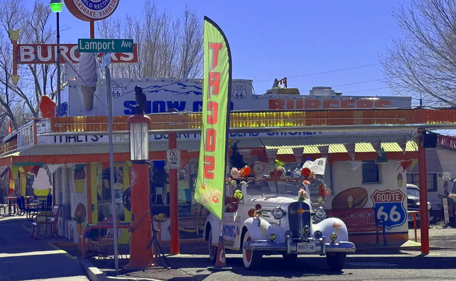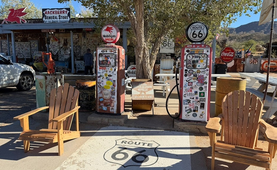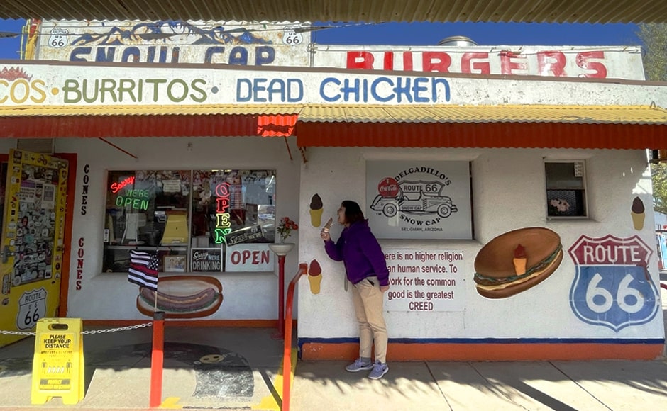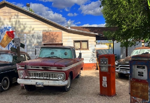 映画「カーズ」の舞台となったルート66 ハックベリー ジェネラルストアで休憩+写真撮影 |