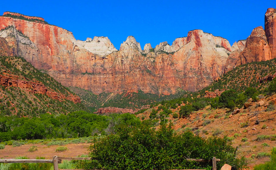 ●ザイオン国立公園:長い年月をかけてバージンリバーによる浸食で出来た渓谷。神々しく切り立つ岩山を見ると、まさに聖域!